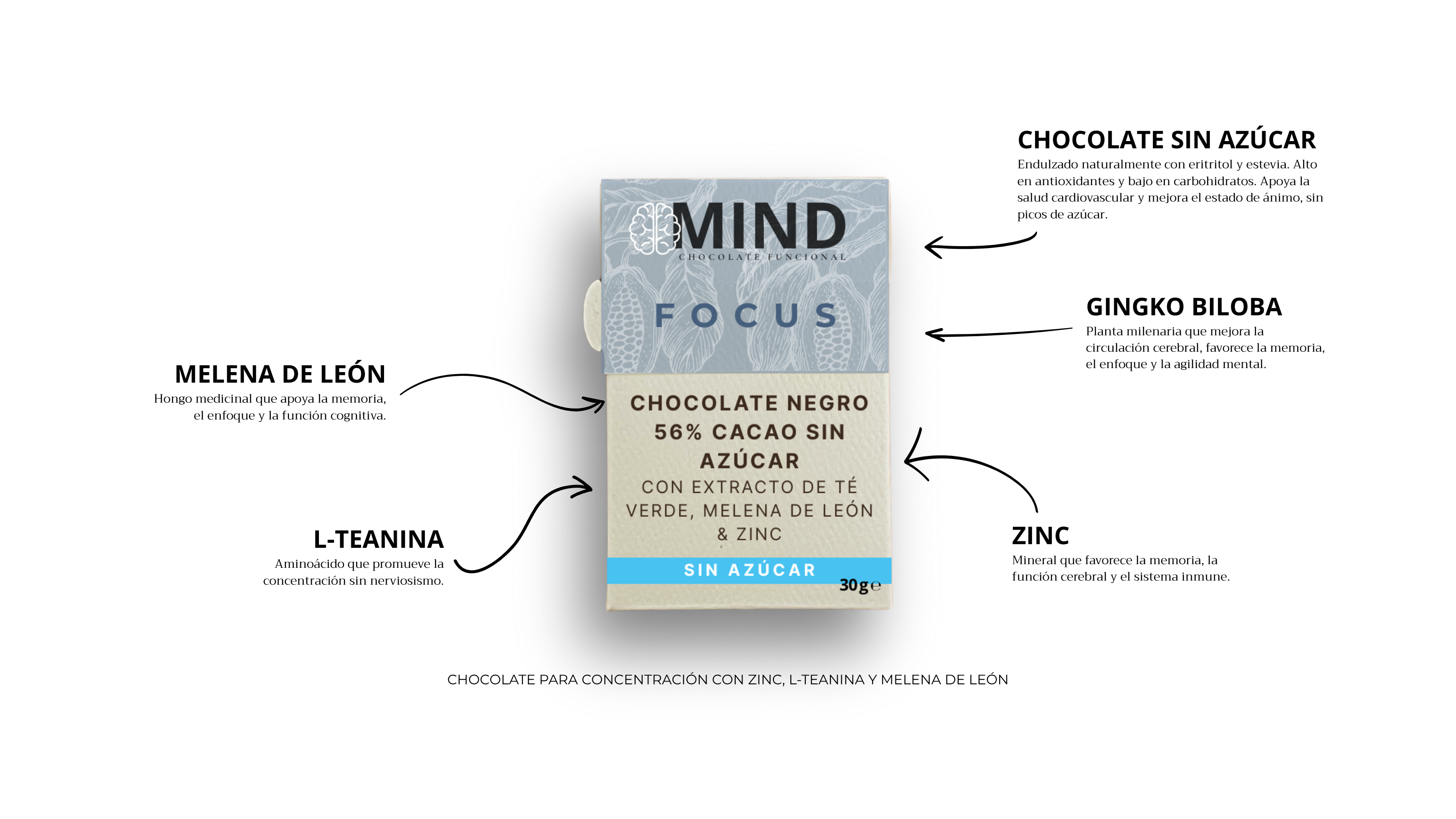 Usamos cacao mexicano sustentable y una mezcla de superalimentos como ashwagandha, maca, colágeno, cafeína natural, lavanda, inulina de agave, magnesio, zinc, entre otros.